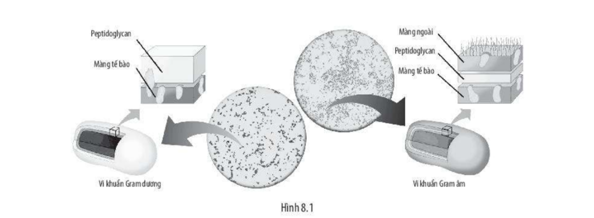 Tùy theo cấu trúc và thành phần hóa học của lớp peptidoglycan, vi khuẩn được chia thành: vi khuẩn gram dương và vi khuẩn gram âm.