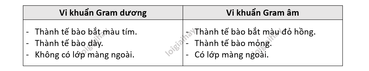 b) Dựa vào hình trên, hãy đưa ra những đặc điểm để phân biệt vi khuẩn Gram dương và Gram âm.