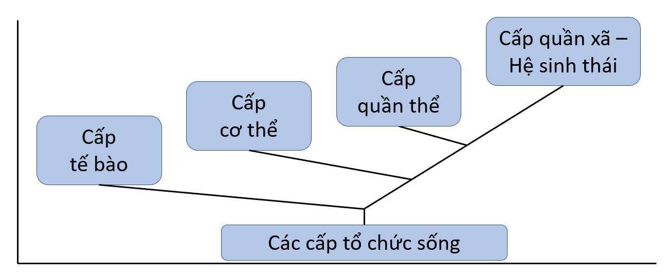- Quan hệ giữa các cấp tổ chức sống được thể hiện trong quan hệ thứ bậc về cấu trúc và chức năng. Các cấp độ tổ chức sống thể hiện mối liên quan bộ phận và tổng thể, trong đó cấp độ tổ chức lớn hơn được hình thành từ cấp độ tổ chức nhỏ hơn liền kề.