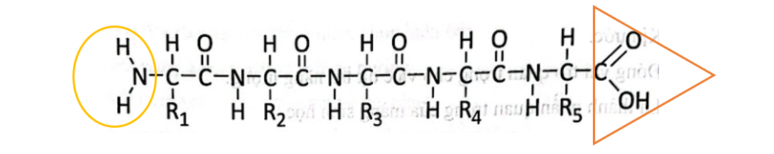 c) Đầu có nhóm amino tự do và nhóm carboxyl tự do