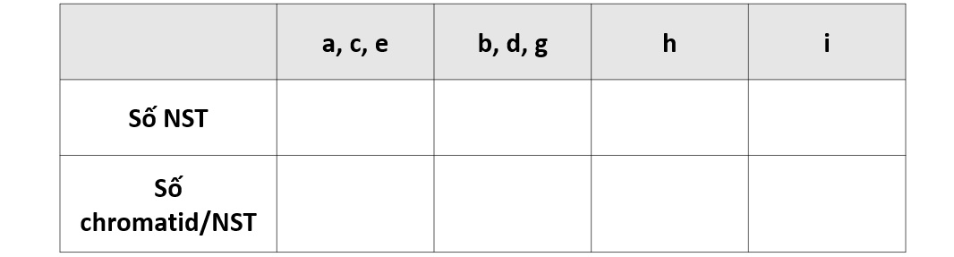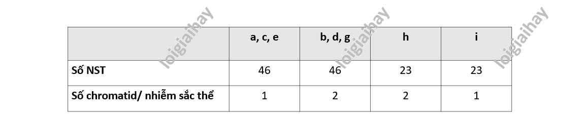 (3) Cho biết bộ NST lưỡng bội của loài là 2n = 46, hãy xác định số NST và số chromatid của mỗi nhiễm sắc thể trong các kì a, b, c, d, e, g, h, i rồi điền vào bảng dưới đây: