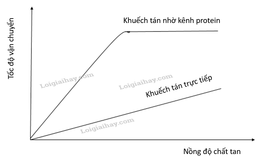 Tốc độ vận chuyển của con đường kênh protein tăng nhanh hơn so với khuếch tán trực tiếp ở giai đoạn đầu, nhưng sẽ bị giới hạn và đạt đến mức ổn định, còn khuếch tán trực tiếp tăng chậm hơn nhưng không bị giới hạn. Tốc độ vận chuyển các chất qua kênh protein tăng đến một giá trị nhất định rồi sau đó giữ ở mức ổn định do số lượng kênh protein trên màng là có giới hạn.