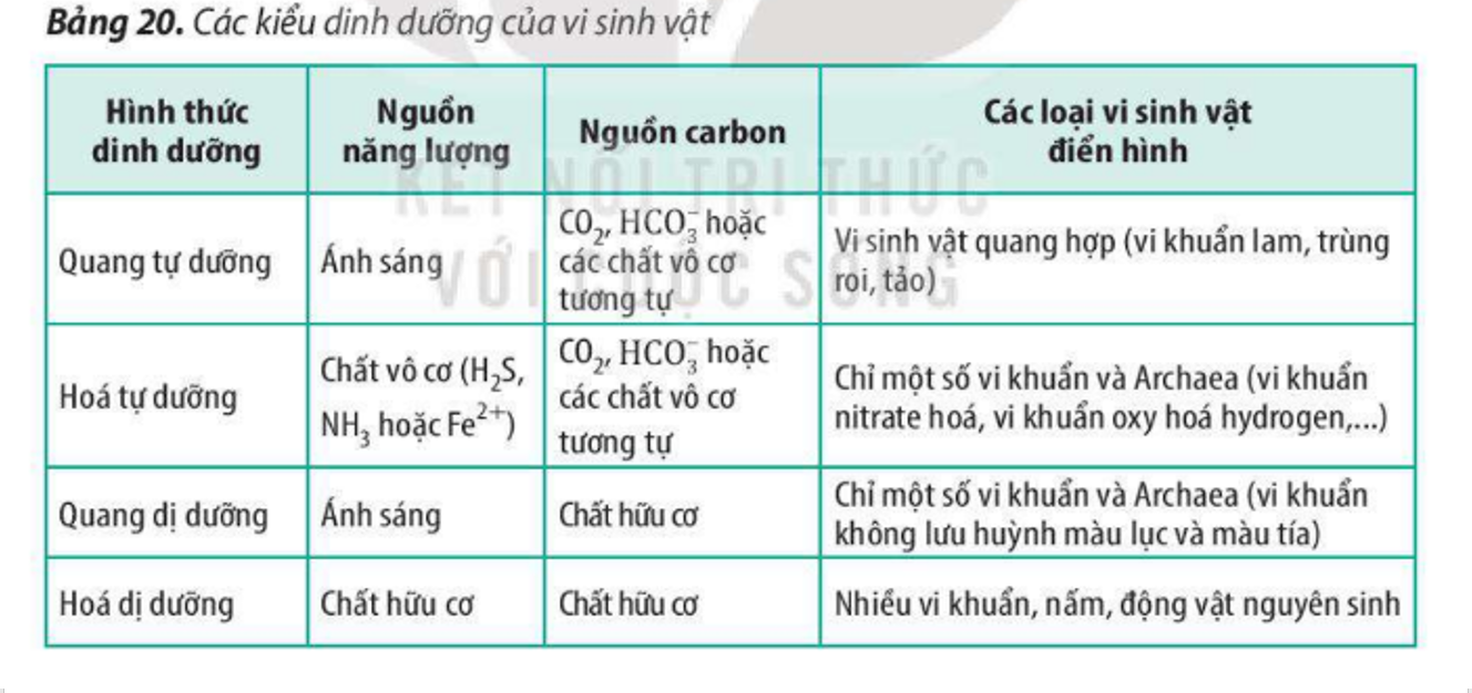 Các vi sinh vật sử dụng nguồn năng lượng là ánh sáng và nguồn carbon là CO2 thuộc nhóm quang tự dưỡng
