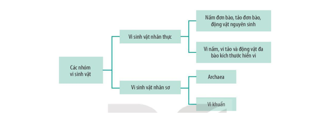 Sơ đồ phân chia các nhóm vi sinh vật được thể hiện như sau: