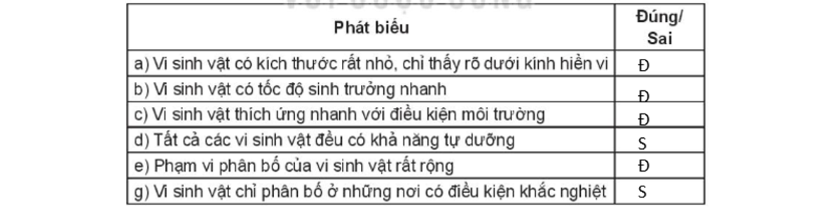 Đặc điểm nào sau đây không phải là đặc điểm của nhóm vi sinh vật?