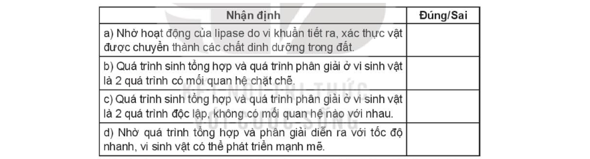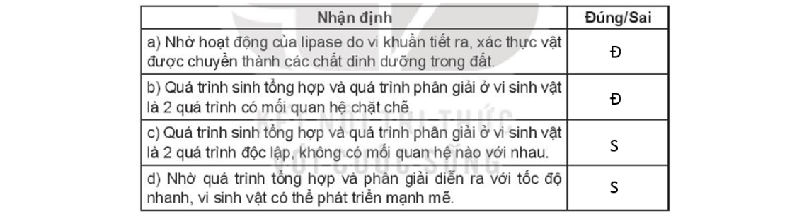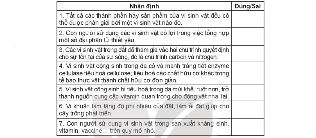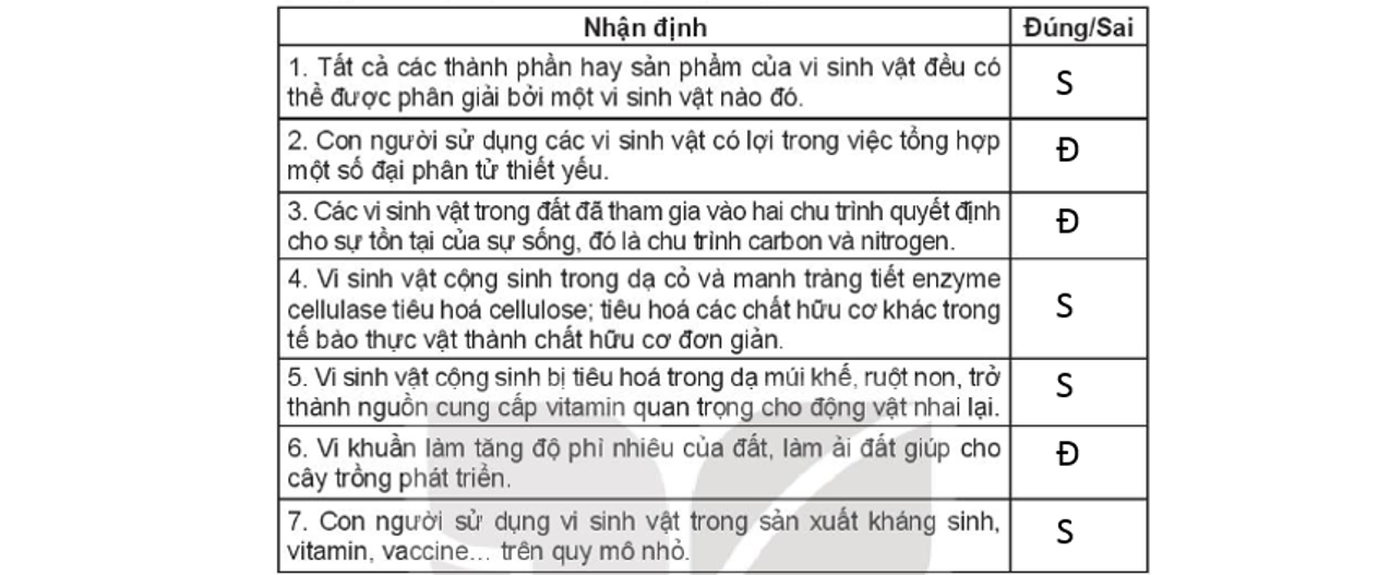 Điền chữ Đ (Đúng), chữ S (Sai) vào ô phù hợp bên cạnh các phát biểu sau: