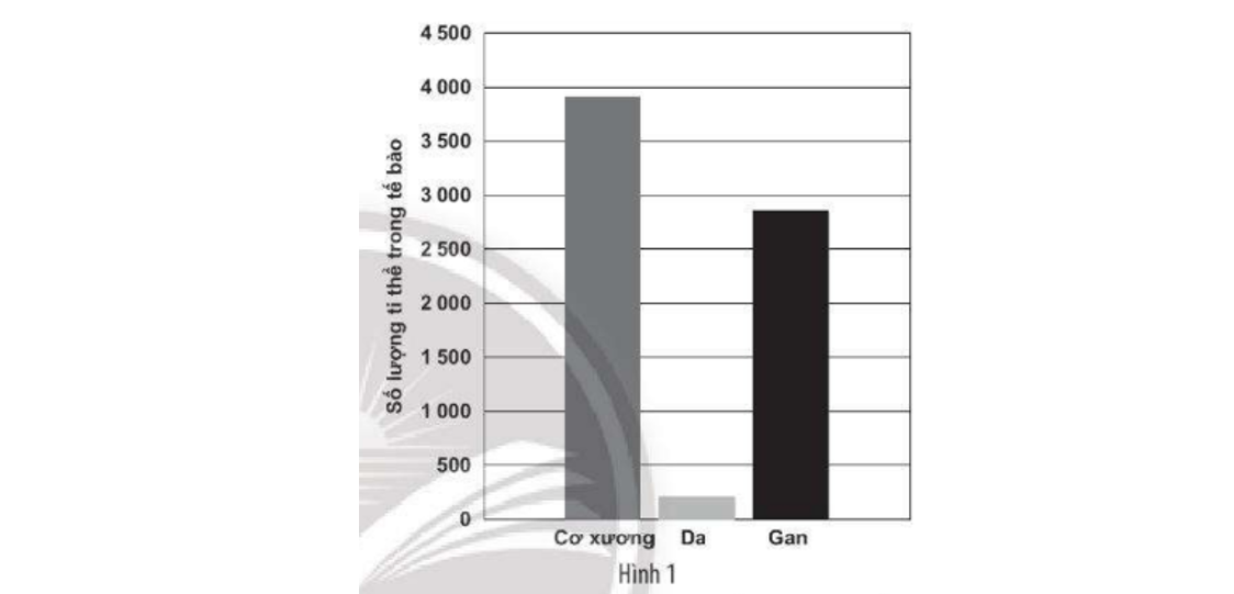 Biểu đồ Hình 1 mô tả số lượng ti thể trong một số tế bào ở người. Giải thích nào sau đây là phù hợp?