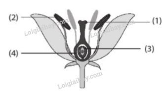 Hình dưới đây thể hiện sơ đồ cấu trúc hoa. Quá trình thụ phấn xảy ra ở đâu?