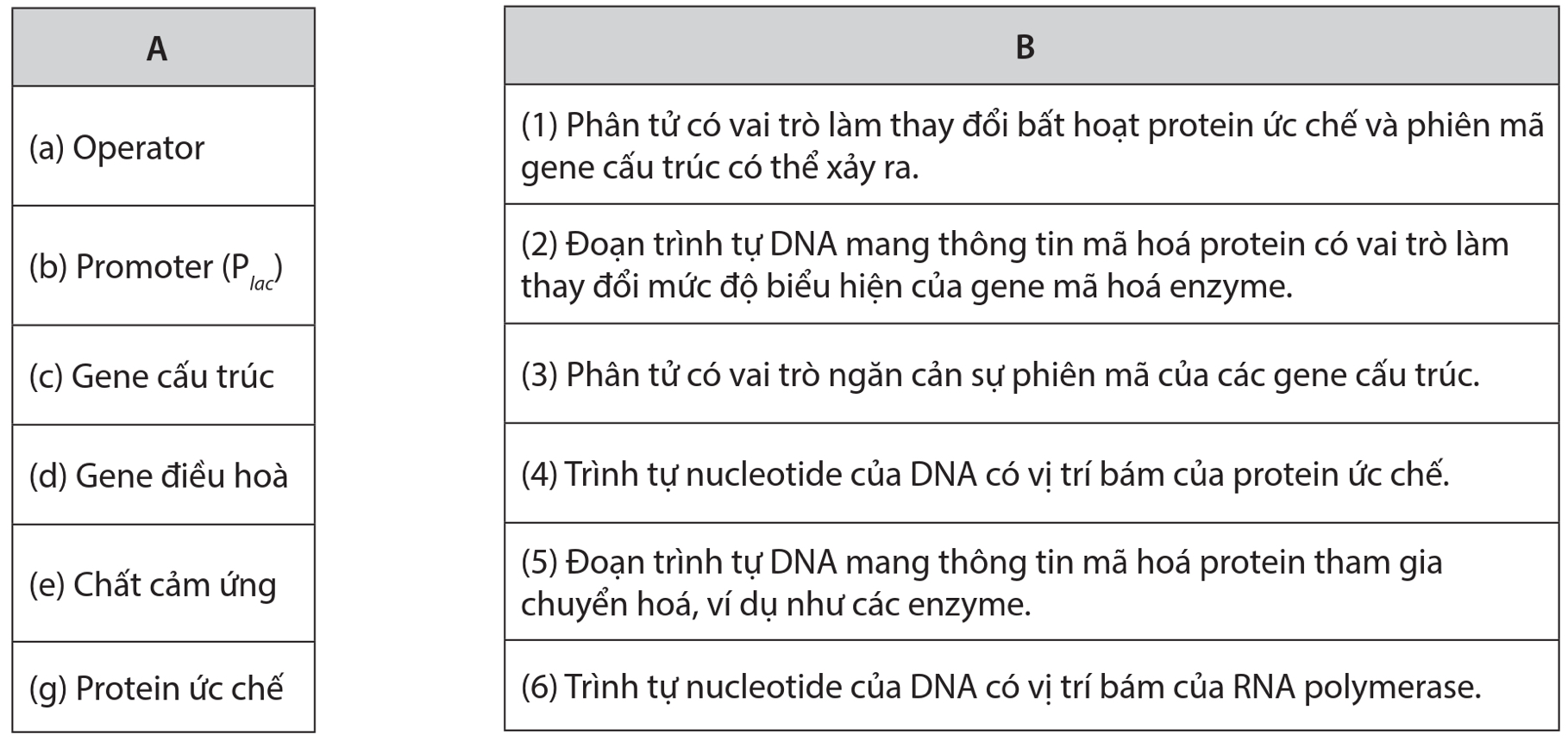 Nối khái niệm về cấu trúc gene với cách giải nghĩa cho phù hợp.