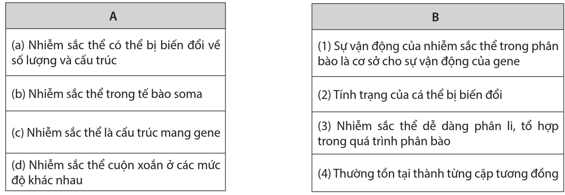 d) Sai. Ở tế bào giao tử, nhiễm sắc thê tồn tại thành từng chiếc. Ở tế bào soma, cặp nhiễm sắc thê giới tính có thê không tương đồng.