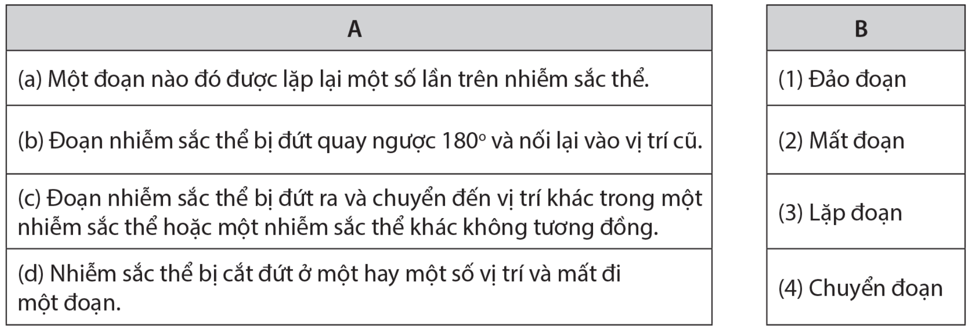 - Đột biến mất đoạn không thể sử dụng làm nguyên liệu trong quá trình chọn giống.