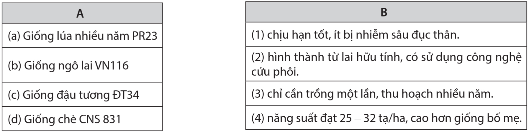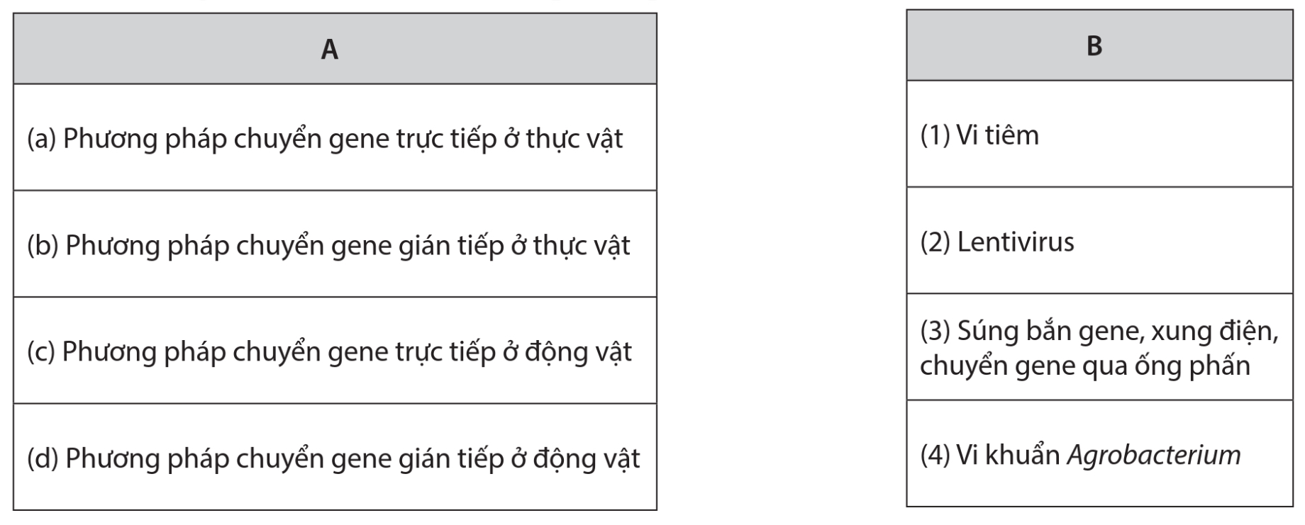 Nối thông tin cột A với cột B sao cho phù hợp.