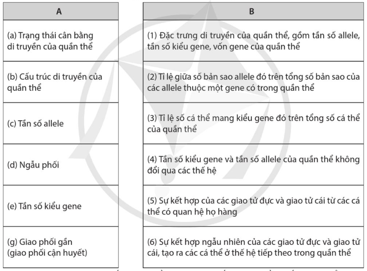 Nối nội dung ở cột A với giải nghĩa ở cột B sao cho phù hợp.