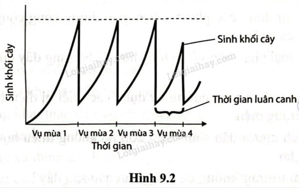 a) Quan sát hình 9.2, hãy giải thích vì sao năng suất của thực vật ở mùa vụ thứ 4 giảm.