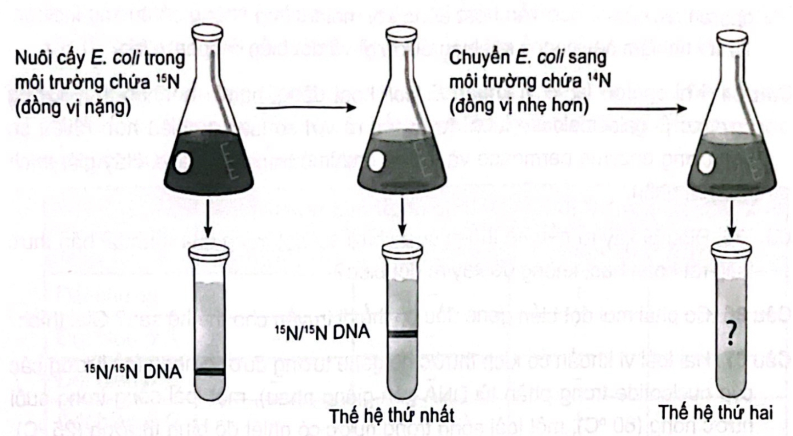 Trong một thí nghiệm, các nhà khoa học đã chuyển vi khuẩn được nuôi cấy nhiều thế hệ trong môi trường có 15N sang môi trường có N và cho chúng tái bản DNA một lần rồi tách DNA mang li tâm. Vị trí DNA trong ống il tâm được mô tả trong hình ở trang bên.