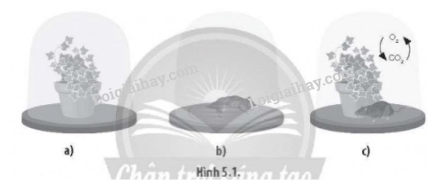 Một nhà khoa học đã tiến hành một thí nghiệm được mô tả như Hình 5.1, cả ba chuông thuỷ tinh đều được đặt ở nơi có đủ ánh sáng. Hãy cho biết: