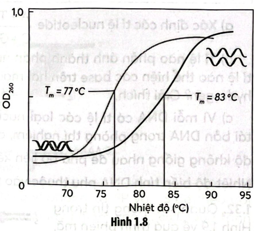 Tỉ lệ (A+T)/(G+C) càng lớn, tức tỉ lệ nucleotide A và T cao hơn G và C (ít liên kết hydrogen) thì nhiệt độ biến tính DNA càng nhỏ.