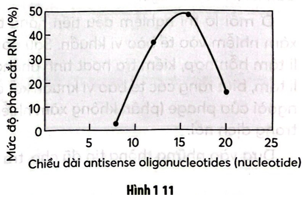 Dòng thông tin di truyền từ DNA đến protein thông qua trung gian là mRNA. Khi tiến hành đưa các đoạn DNA ngắn (antisense oligonucleotides) có trình tự bổ sung với mRNA thì liên kết hydrogen có thể xảy ra, tạo phân tử lai DNA/ RNA, phân tử lai này đánh dấu cho enzyme ribonuclease-H phân giải RNA. Một nghiên cứu đã tiến hành so sánh ảnh hưởng của các độ dài antisense oligonucleotides đối với sự phân giải mRNA qua ribonuclease-H của một loại protein trong tế bào. Kết quả của thí nghiệm được thể hiện qua biểu đồ trong Hình 1.1.