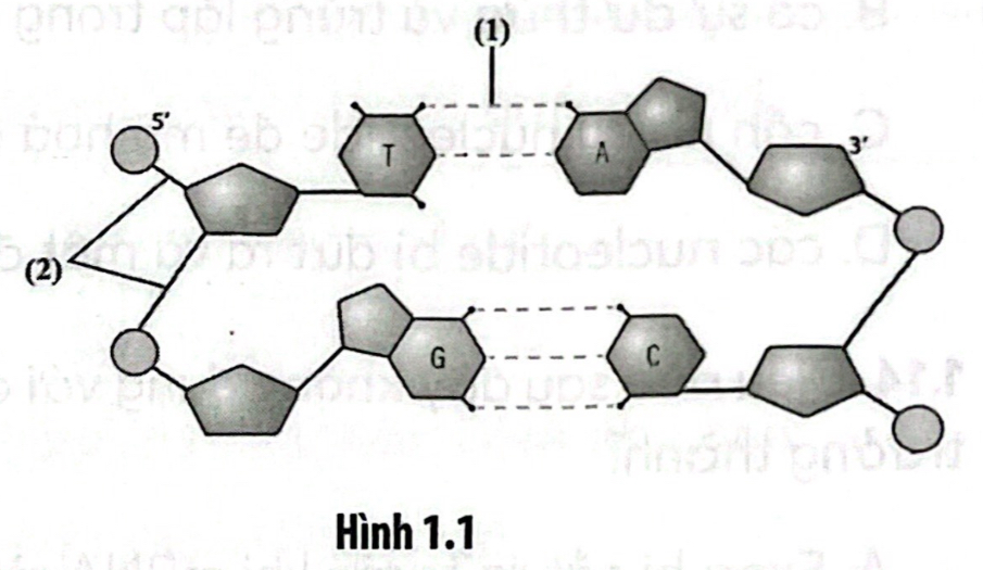 Một số liên kết tham gia vào cấu trúc phân tử DNA mạch kép như Hình 1.1, phát biểu nào sau đây không đúng?