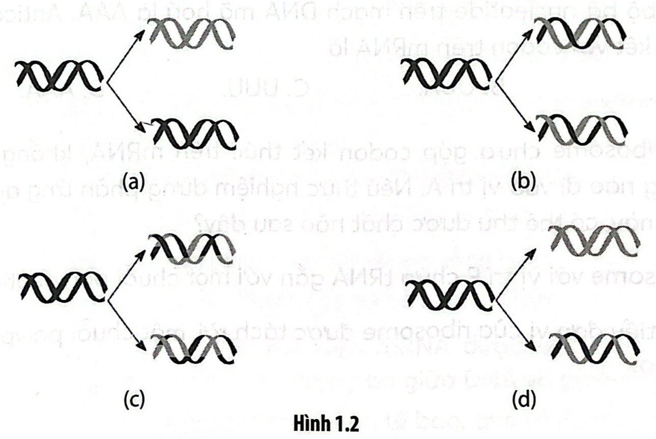 Quá trình tái bản DNA được thực hiện theo nguyên tắc bán bảo toàn. Hình nào trong các hình dưới đây minh họạ đúng nguyên tắc này?