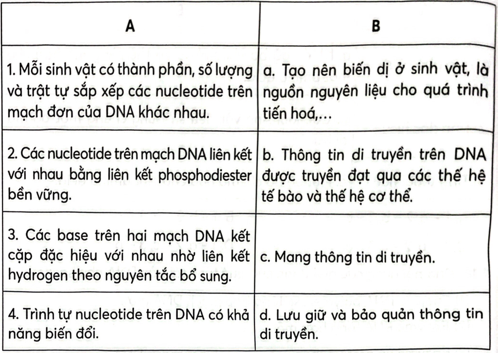 Bài 1. Gene và cơ chế truyền thông tin di truyền trang 4, 5, 6 SBT Sinh học 12 Chân trời sáng tạo>