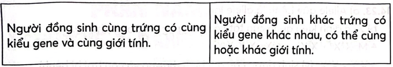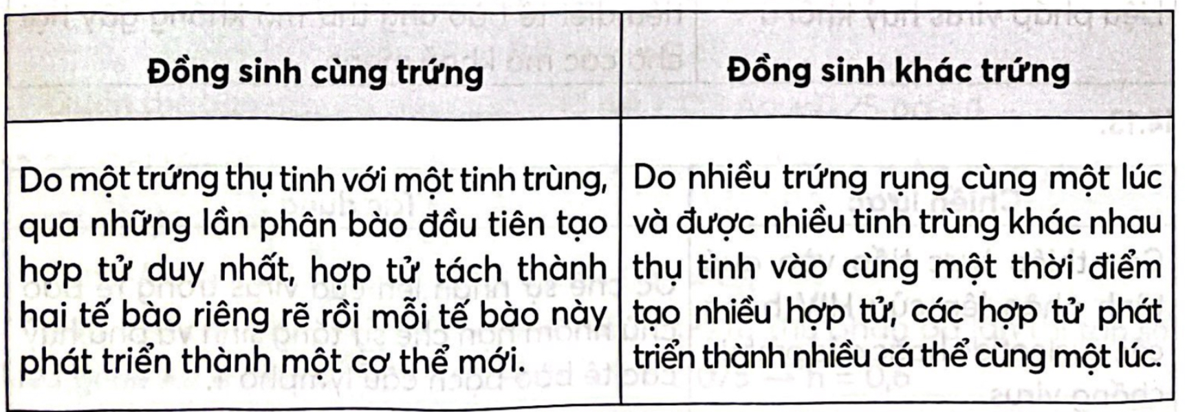 Phân biệt đồng sinh cùng trứng và đồng sinh khác trứng.