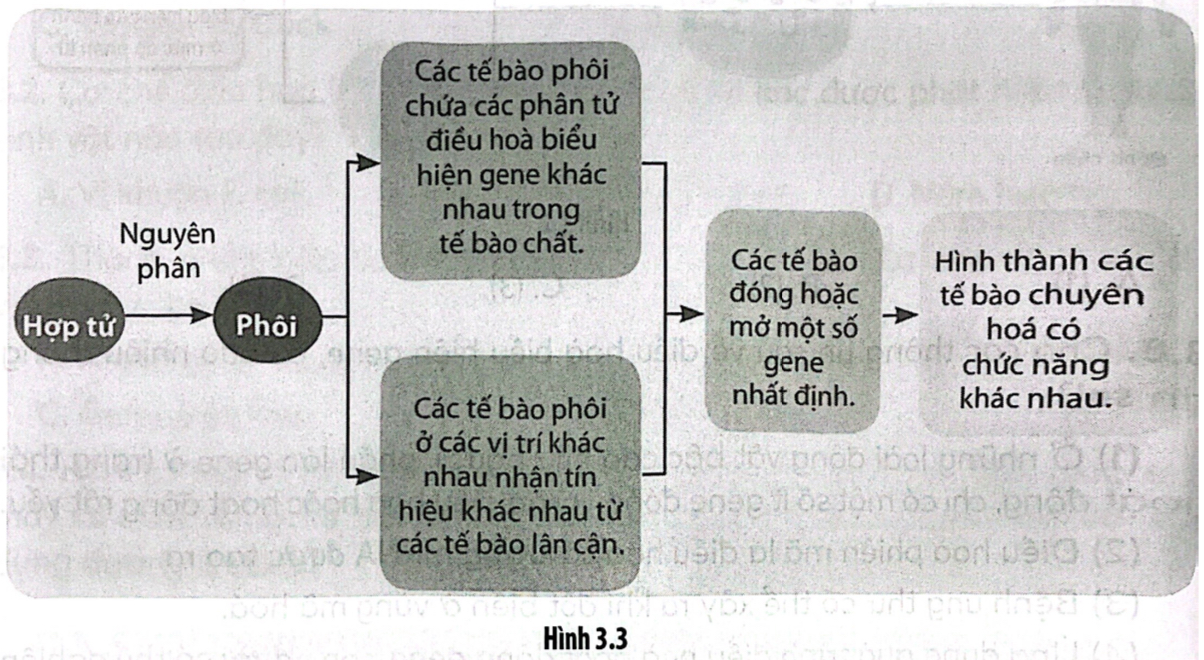 Hình 3.3 mô tả sự điều hòa biểu hiện gene trong quá trình phát triển cá thể ở sinh vật đa bào. Mỗi nhận định sau đây là đúng hay sai về quá trình này?