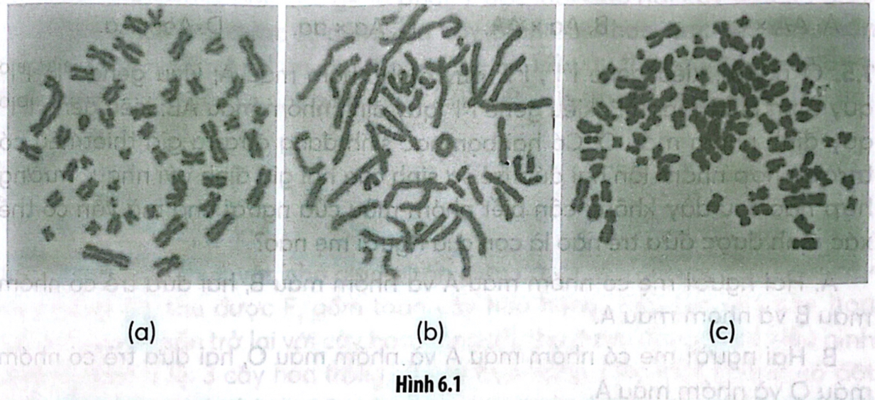 Hình 6.1 mô tả tiêu bản một số dạng đột biến nhiễm sắc thể ở người được quan sát dưới kính hiển vi quang học. Mỗi nhận định sau đây là đúng hay sai về các dạng đột biến nhiễm sắc thể này?