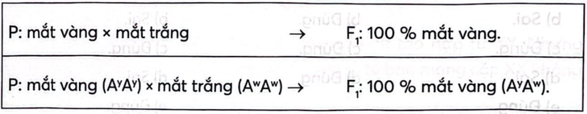 - Phép lai 2: mắt vàng x mắt trắng →F1: 100% mắt vàng.