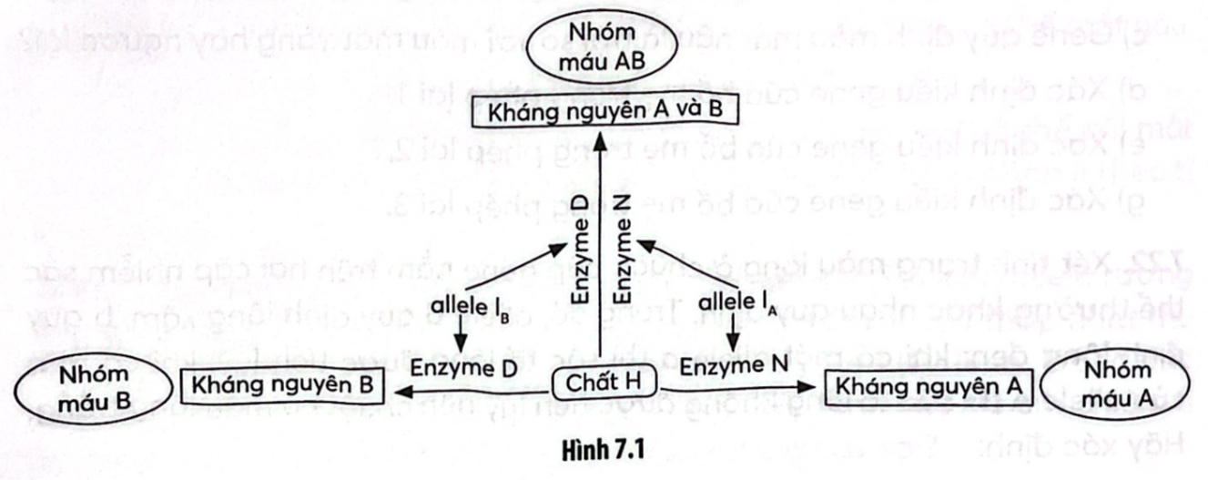 - Kiểu gene IAIA và IAIO quy định nhóm máu A do allele IA mã hoá tổng hợp enzyme N (enzyme N acetyl-galactosamine transferase), enzyme này thực hiện gắn nhóm N-acetyl-galactosamine vào chất H tạo nên kháng nguyên A; allele IO không có chức năng này.