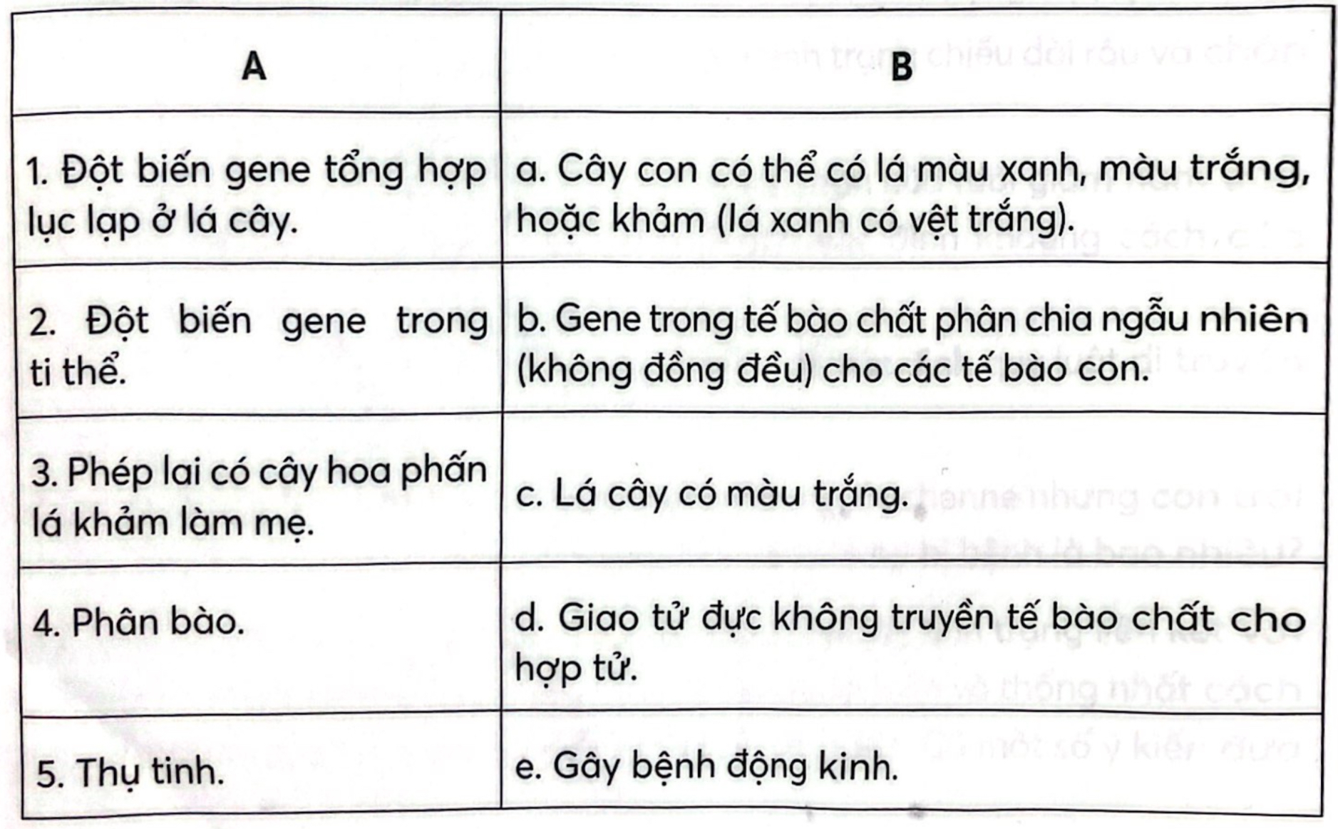 Hãy ghép thông tin ở cột Avới cột B sao cho đúng với các hiện tượng di truyền gene ngoài nhân.