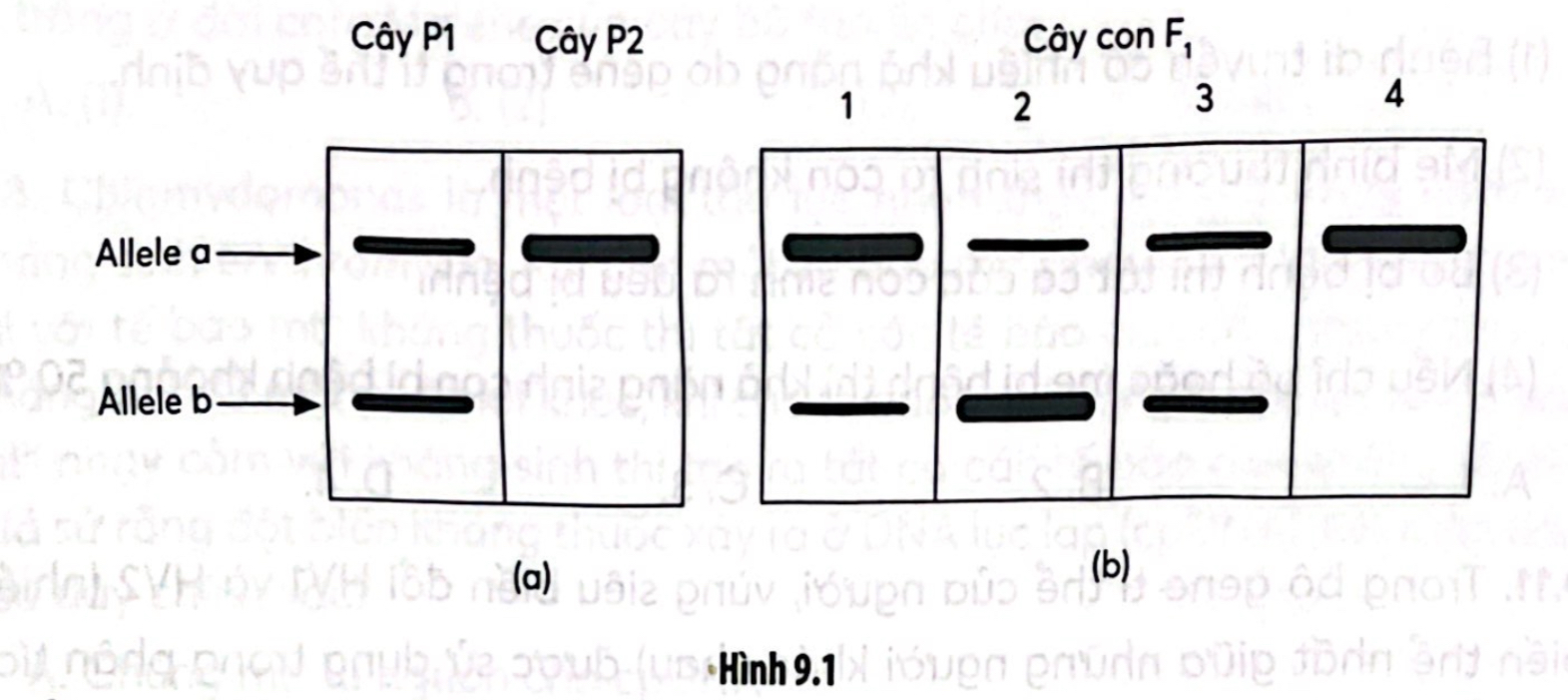 - Ở cây con 1, 2, 3 xuất hiện băng allele a và b, băng này có thể do nhận được hoàn toàn từ mẹ, hoặc cả bố và mẹ.