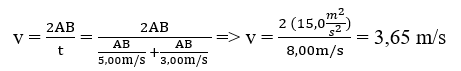 Một người đi bộ với tốc độ không đổi 5,00 m/s dọc theo đường thẳng từ A đến B rồi đi ngược lại theo đường thẳng đó từ B đến A với tốc độ không đổi 3,00 m/s.