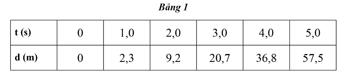 Một xe thí nghiệm chuyển động trên đường thẳng. Độ dịch chuyển của nó theo thời gian được thể hiện trong bảng 1.
