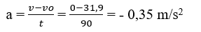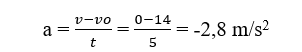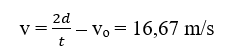 v2 – vo2 = 2as => 02 – vo2 = 2 . (-0,85 . 9,8) . 12,8 => vo = 14,6 m/s