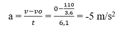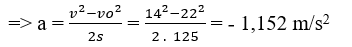 Khi xe hãm phanh thì gia tốc ngược chiều chuyển động nên có giá trị âm.