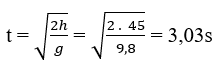 Tầm xa: L=v0t=15.3,03=45,45 m">L = v . t = 15 . 3,03 = 45,45m
