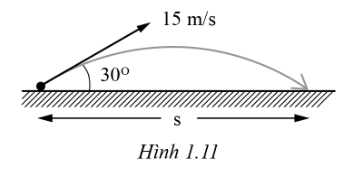 Từ mặt đất, một quả bóng được đá đi với vận tốc 15 m/s hợp với phương ngang góc 300 (hình 1.11). Nó chạm đất cách điểm được đá bao xa?