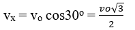 Thành phần theo phương ngang của vận tốc quả bóng là: