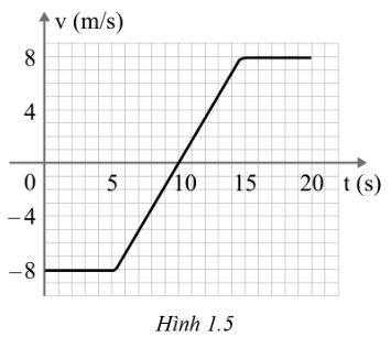 Một người thợ xây ở mặt đất tung một viên gạch lên cho người thợ xây đang ở trên giàn giáo, người này sẽ bắt được nó. Đồ thị ở hình 1.9 thể hiện vận tốc của viên gạch từ khi nó rời khỏi tay người thợ xây ở mặt đất đến khi người thợ xây ở trên giàn giáo bắt được nó.