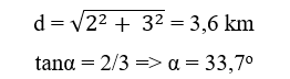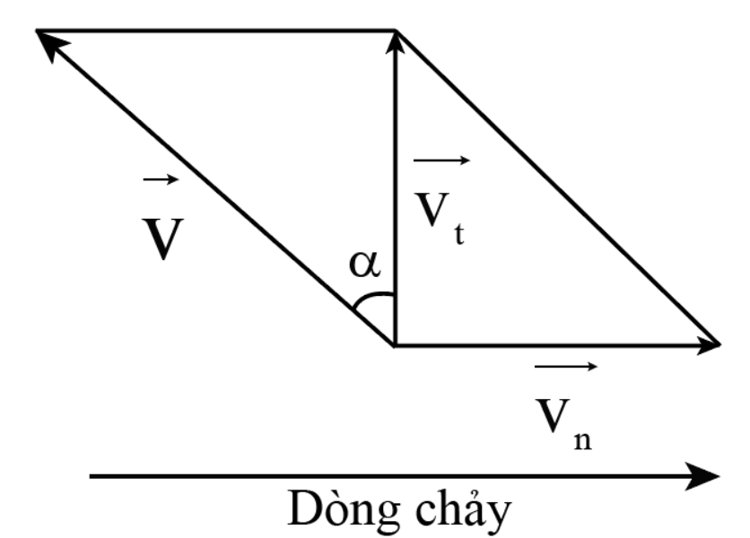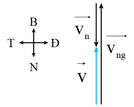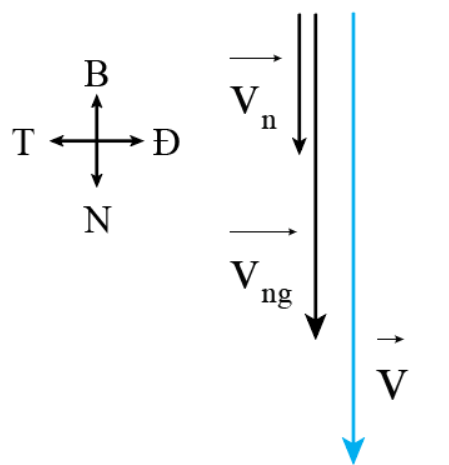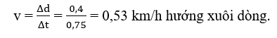 Độ dịch chuyển: d = d1 + d2 = 1,6 − 1,2 = 0,4km hướng xuôi dòng