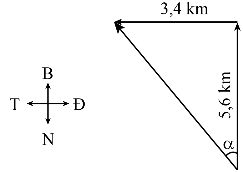Một người đi bộ 5,0 km trên một con đường thẳng theo hướng bắc rồi quay đầu lại và đi 12 km theo hướng nam. Tìm: