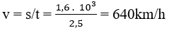 Một máy bay trong 2,5 giờ bay được 1,6 . 103 km. Tìm tốc độ trung bình của máy bay.