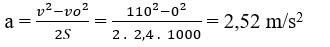 v2 – vo2 = 2as => 02 – 182 = 2 . (-9,8) . s => s = 16,5 m
