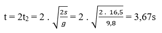 b. Thời gian quả bóng trở về vị trí ném ban đầu bằng 2 lần thời gian bóng rơi từ độ cao 16,5 m xuống vị trí ném (thời gian rơi bằng thời gian vật rơi tự do từ độ cao 16,5 m).