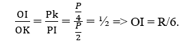 Trọng tâm của đĩa bị khoét là điểm đặt hợp lực của trọng lực PK của hình tròn tâm K bán kính R/2 và trọng lực PI của phần đĩa còn lại sau khi khoét đi hai lỗ tròn đối xứng qua I.
