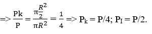 Vì đĩa phẳng đồng chất nên trọng lượng mỗi phần đĩa tỉ lệ với diện tích. Gọi P là trọng lượng của đĩa nguyên, ta có: