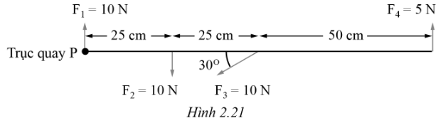 Một thanh cứng đồng chất chịu tác dụng của bốn lực như hình 2.21