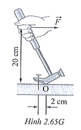c. F có tác dụng làm búa quay quanh O theo chiều kim đồng hồ, F2 có tác dụng làm búa quay quanh O ngược chiều kim đồng hồ. Lực cần tác dụng để nhổ được đinh tối thiểu gây ra mô men lực bằng mô men lực cản của gỗ:
