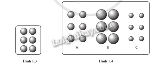Trong hình 1.4, hình nào thể hiện đúng nhất cấu trúc của chất rắn khi bị nung nóng?